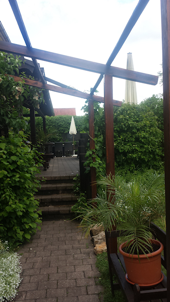 In unserem schönen, grün bewachsenen Biergarten lässt es sich so richtig gemütlich aushalten.